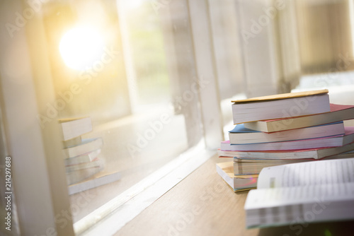 Stack Of Books Near The Window Education Background Back To