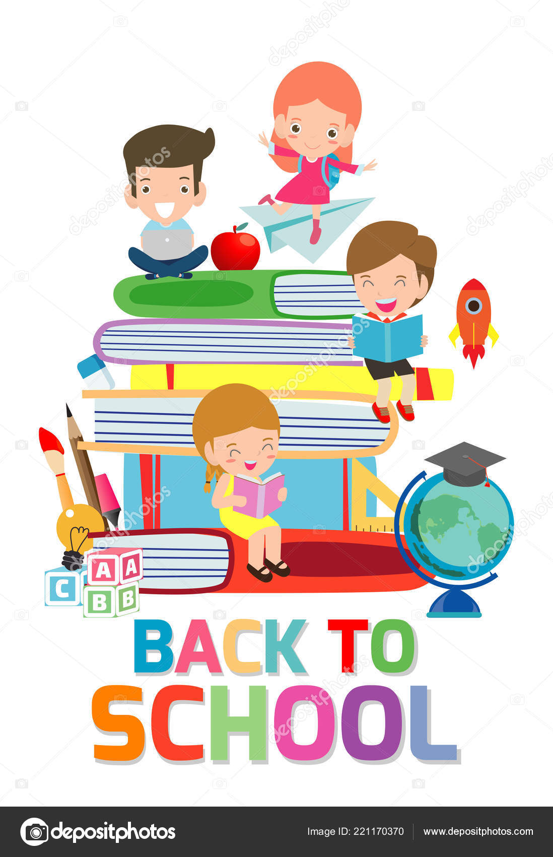 Back School Cute Kids Reading Book Children Books Happy Children